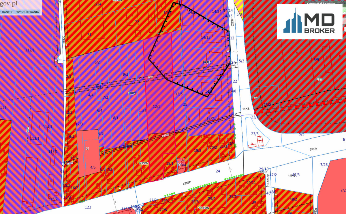 - Większość działki to teren 6U/P (usługowo-produkcyjny), a część to 6U/MN (usługowo-mieszkaniowy).