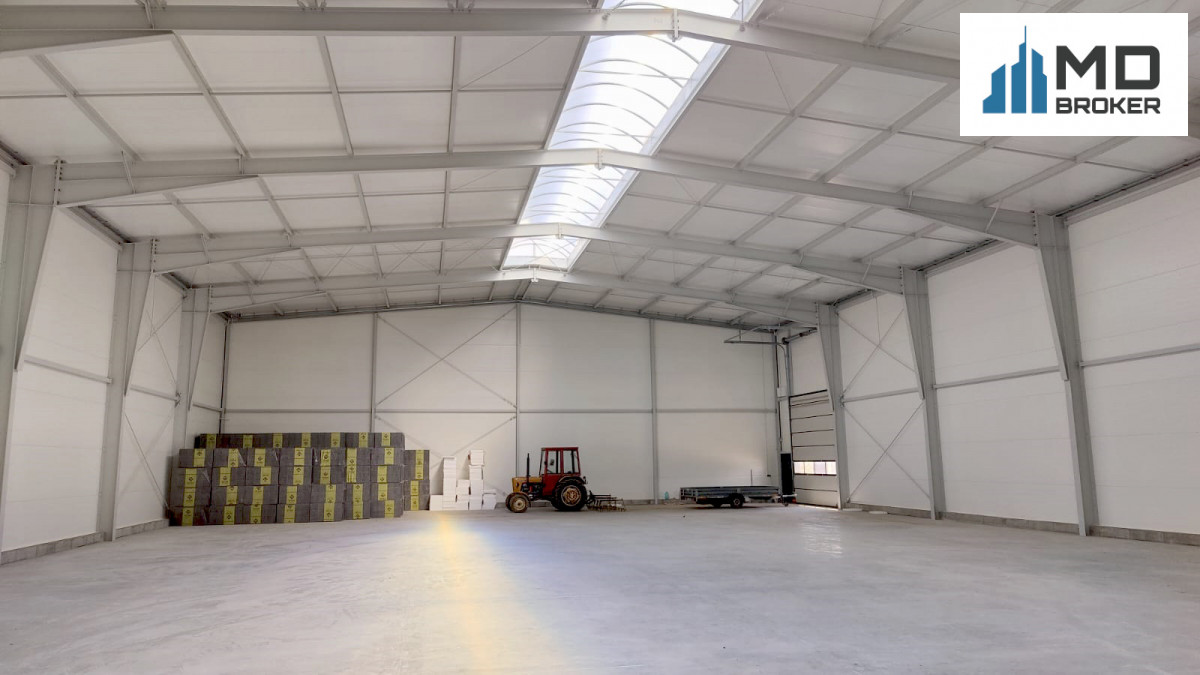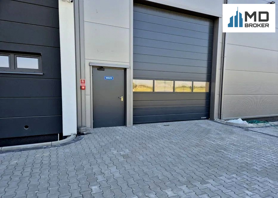 Hala wyposażona w 2 bramy elektrycznie otwierane oraz świetlik na dachu.