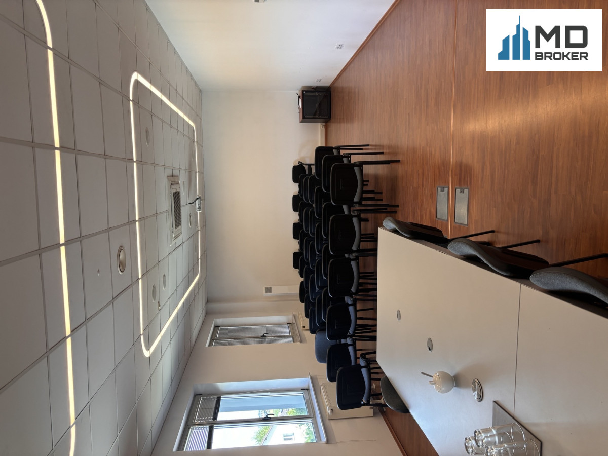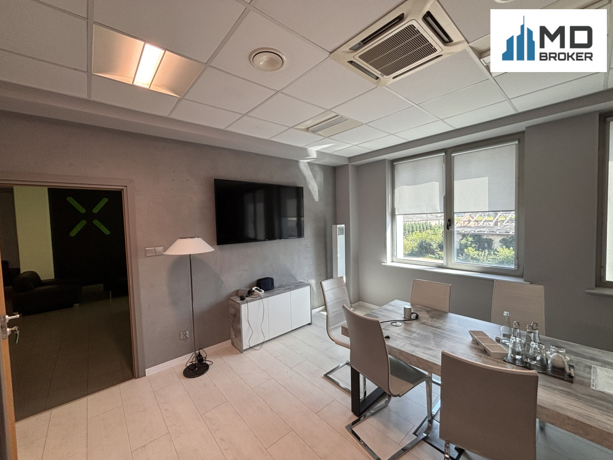 Powierzchnia biurowa położona jest na 2 kondygnacjach ( I i II piętro). Przestronne wyposażone pokoje biurowe, energooszczędne oświetlenie, duża sala konferencyjna oraz dwie mniejsze, duża kuchnia, nowoczesne toalety, klimatyzacja, miejsca parkingowe.